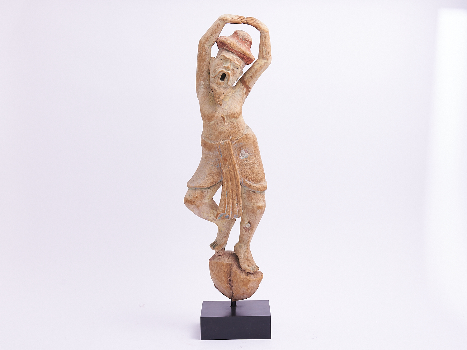 A BURMESE WOODEN FIGURE OF A DANCING SADHU, MANDALAY PERIOD H.71CM, LEONARD JOEL LOCAL DELIVERY: MEDIUM