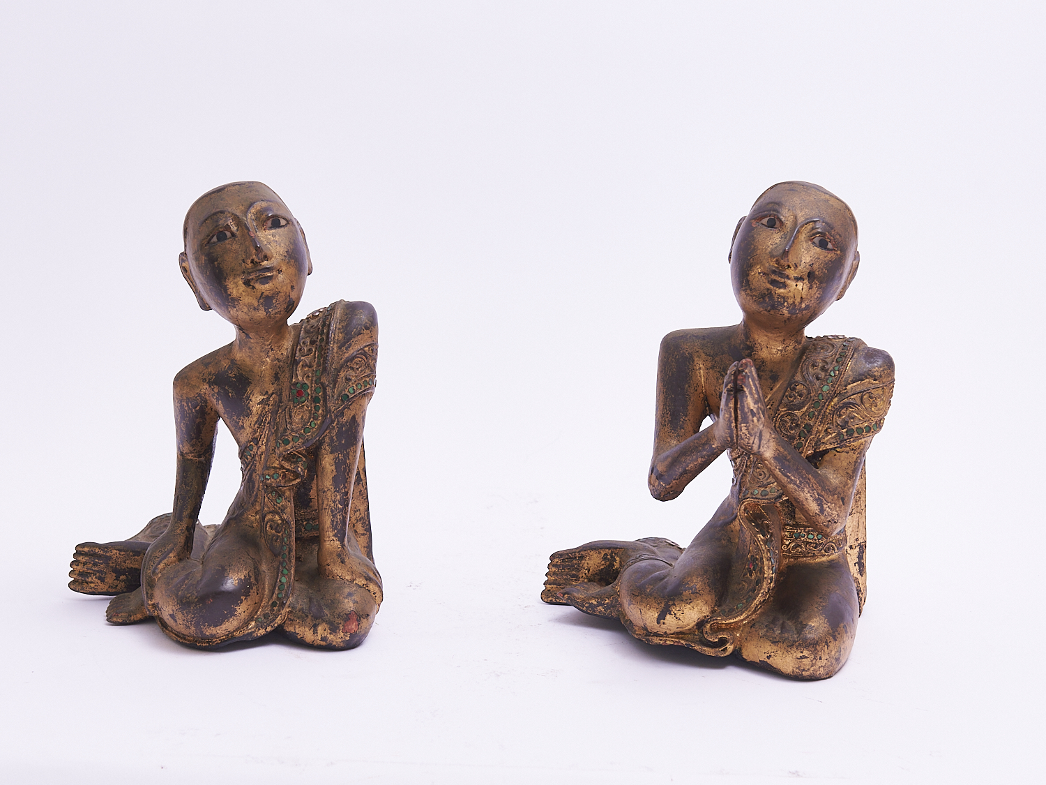 TWO WOODEN PRAYING FIGURES, LEONARD JOEL LOCAL DELIVERY: MEDIUM