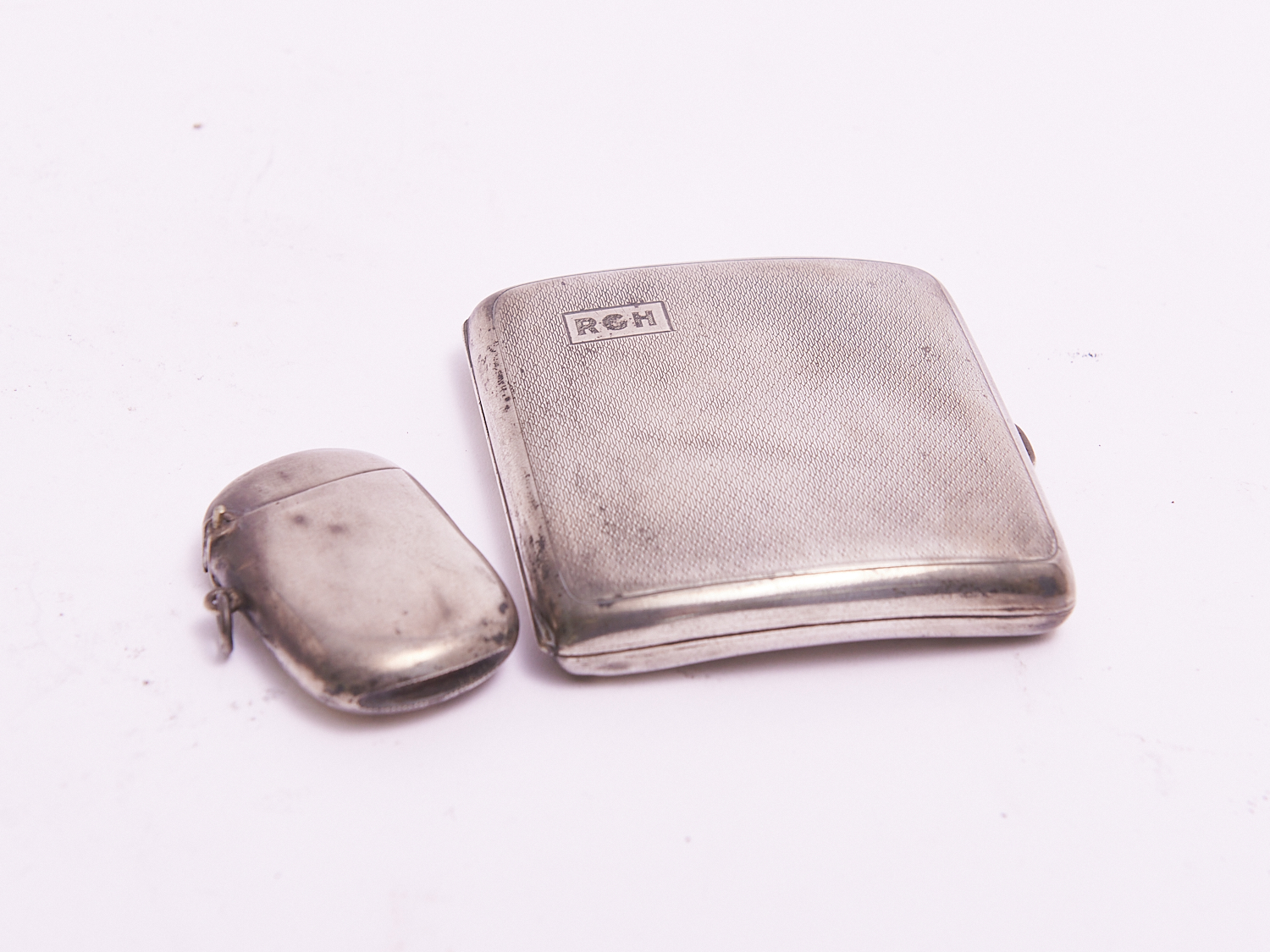 A STERLING SILVER CIGARETTE CASE TOGETHER WITH VESTA, LEONARD JOEL LOCAL DELIVERY: SMALL