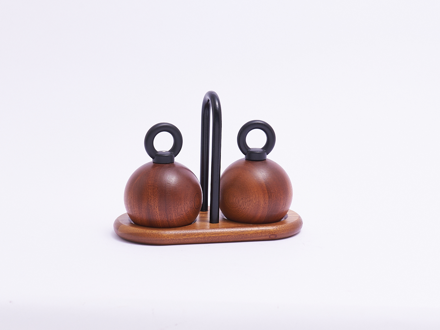 A PAIR OF DANISH BODUM WOODEN BALL SALT AND PEPPER GRINDERS, BY RICHARD NISSEN, LEONARD JOEL LOCAL DELIVERY: SMALL