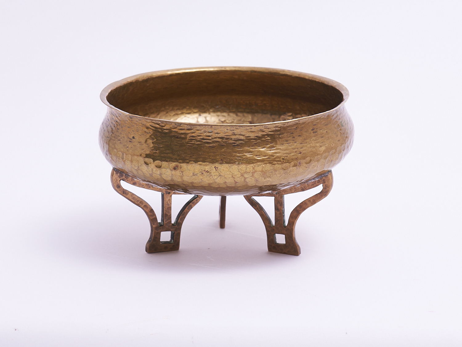 A HAND BEATEN AUSTRIAN ARTS & CRAFTS BRASS TRIFOOTED BOWL, LEONARD JOEL LOCAL DELIVERY: MEDIUM