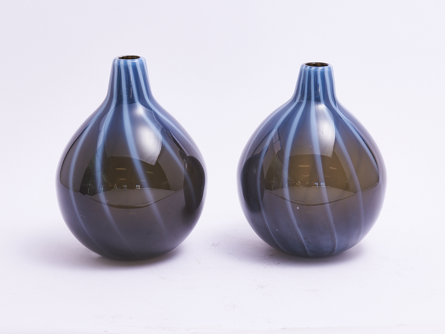A PAIR OF RETRO ITALIAN ART GLASS STRIPED VASES H.25CM, LEONARD JOEL LOCAL DELIVERY: MEDIUM