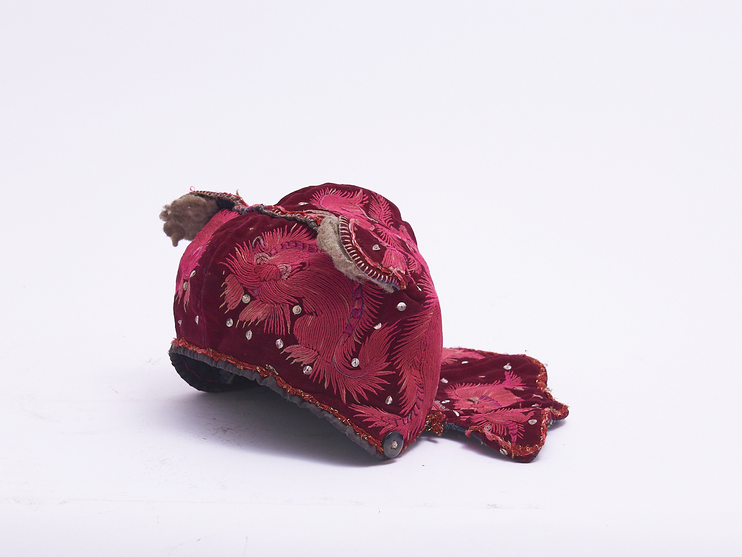 A SILK EMBROIDERED DRAGON PATTERN CHINESE HAT, LEONARD JOEL LOCAL DELIVERY: SMALL