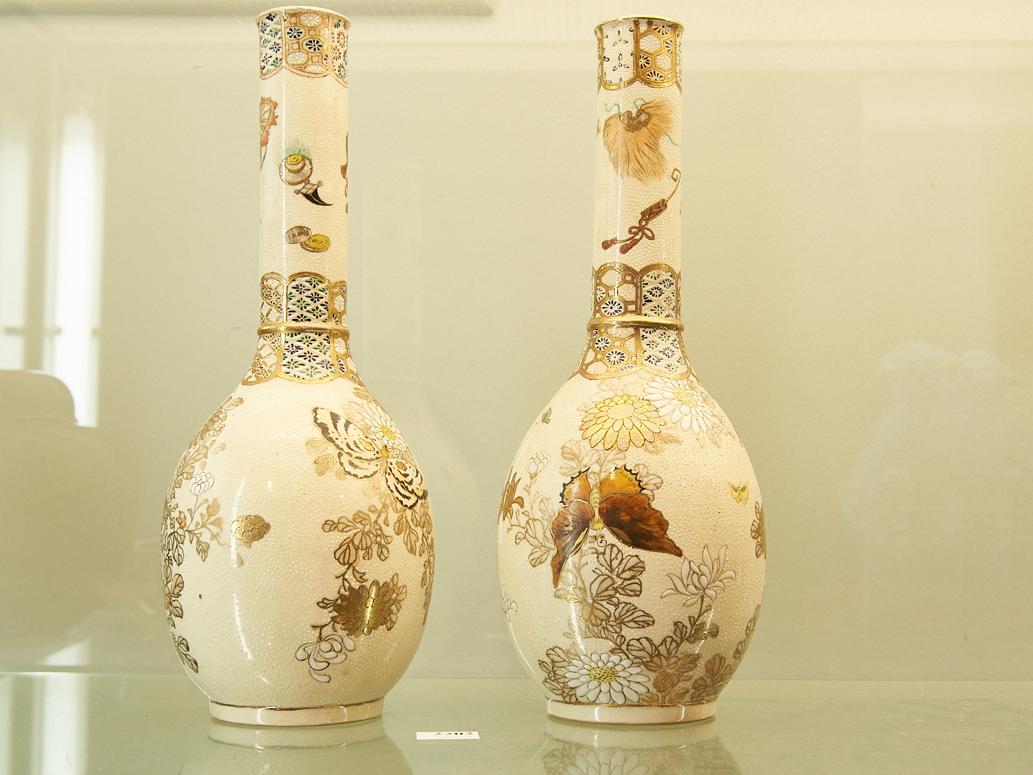 A PAIR OF JAPANESE SATSUMA BUTTERFLY DECORATED VASES H.31CM, LEONARD JOEL LOCAL DELIVERY: MEDIUM