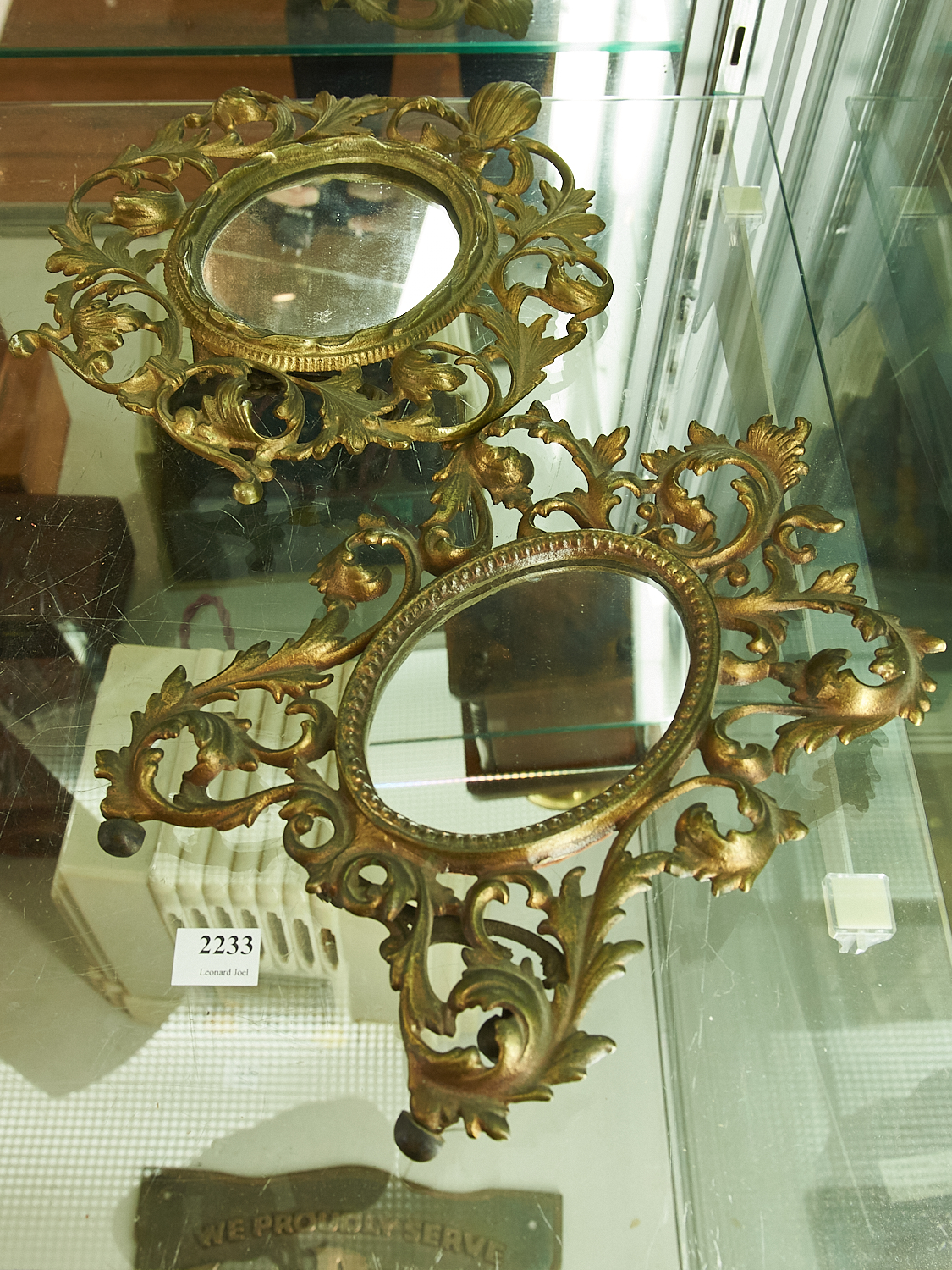 A PAIR OF EARLY 20TH CENTURY FRENCH FLORAL DECORATED SOLID BRASS MIRRORS, LEONARD JOEL LOCAL DELIVERY: MEDIUM