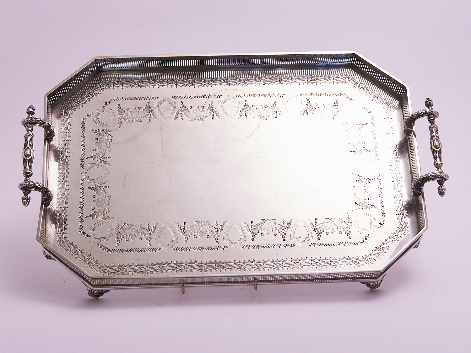 A SILVER PLATED TWO HANDLED RECTANGULAR GALLERY TRAY, LEONARD JOEL LOCAL DELIVERY: SMALL