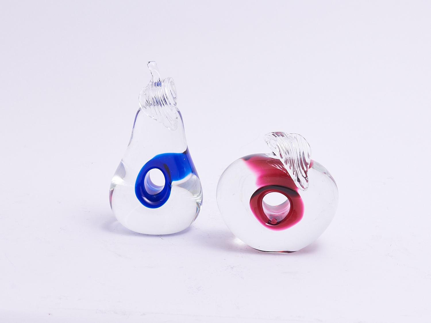 A PAIR OF ITALIAN ART GLASS CASED APPLE AND PEAR FIGURES H.18CM (TALLEST), LEONARD JOEL LOCAL DELIVERY: SMALL