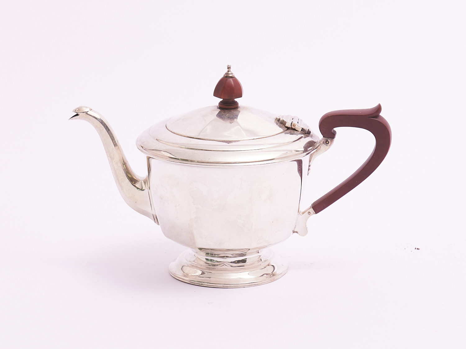 A STERLING SILVER TEAPOT - 348 GRAMS, LEONARD JOEL LOCAL DELIVERY: SMALL