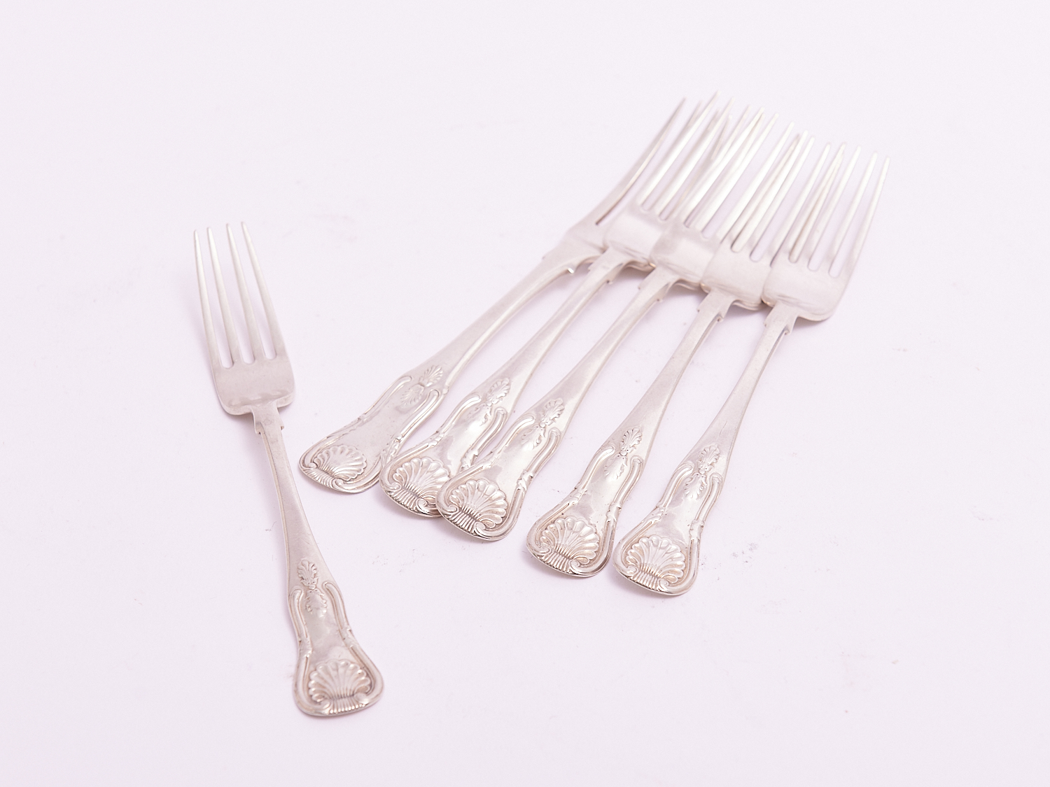 A SET OF SIX SCOTTISH STERLING SILVER QUEENS PATTERN FORKS – 232 GRAMS, LEONARD JOEL LOCAL DELIVERY: SMALL