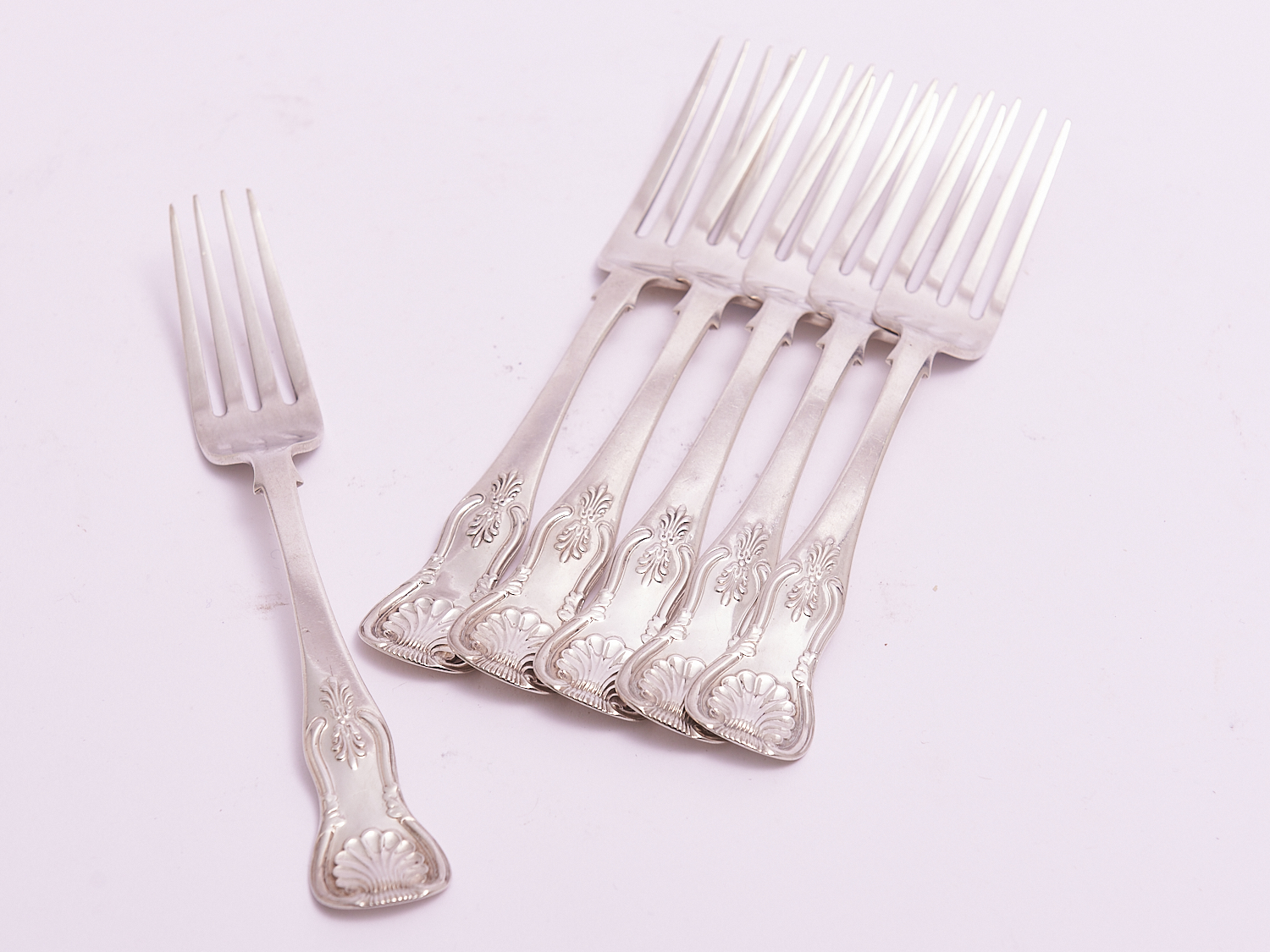 A SET OF SIX VICTORIAN SCOTTISH STERLING SILVER QUEENS PATTERN FORKS – 396 GRAMS, LEONARD JOEL LOCAL DELIVERY: SMALL