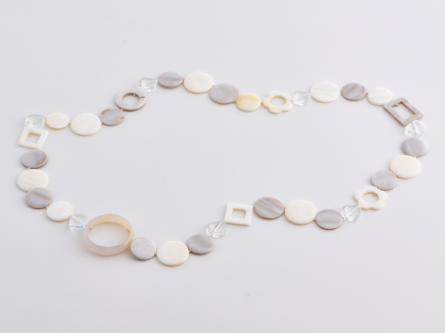 A MOTHER OF PEARL AND WHITE AGATE NECKLACE, TOTAL LENGTH APPROXIMATELY 990MM