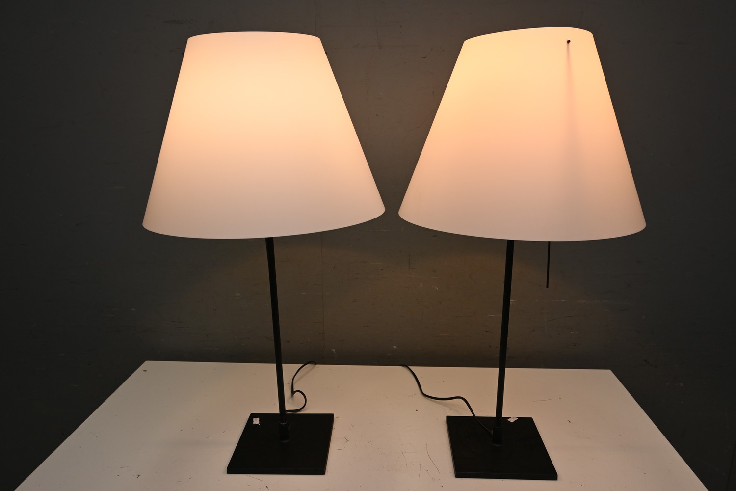A PAIR OF BLACK METAL TABLE LAMPS (76H X 40D CM) (LEONARD JOEL DELIVERY SIZE: MEDIUM)