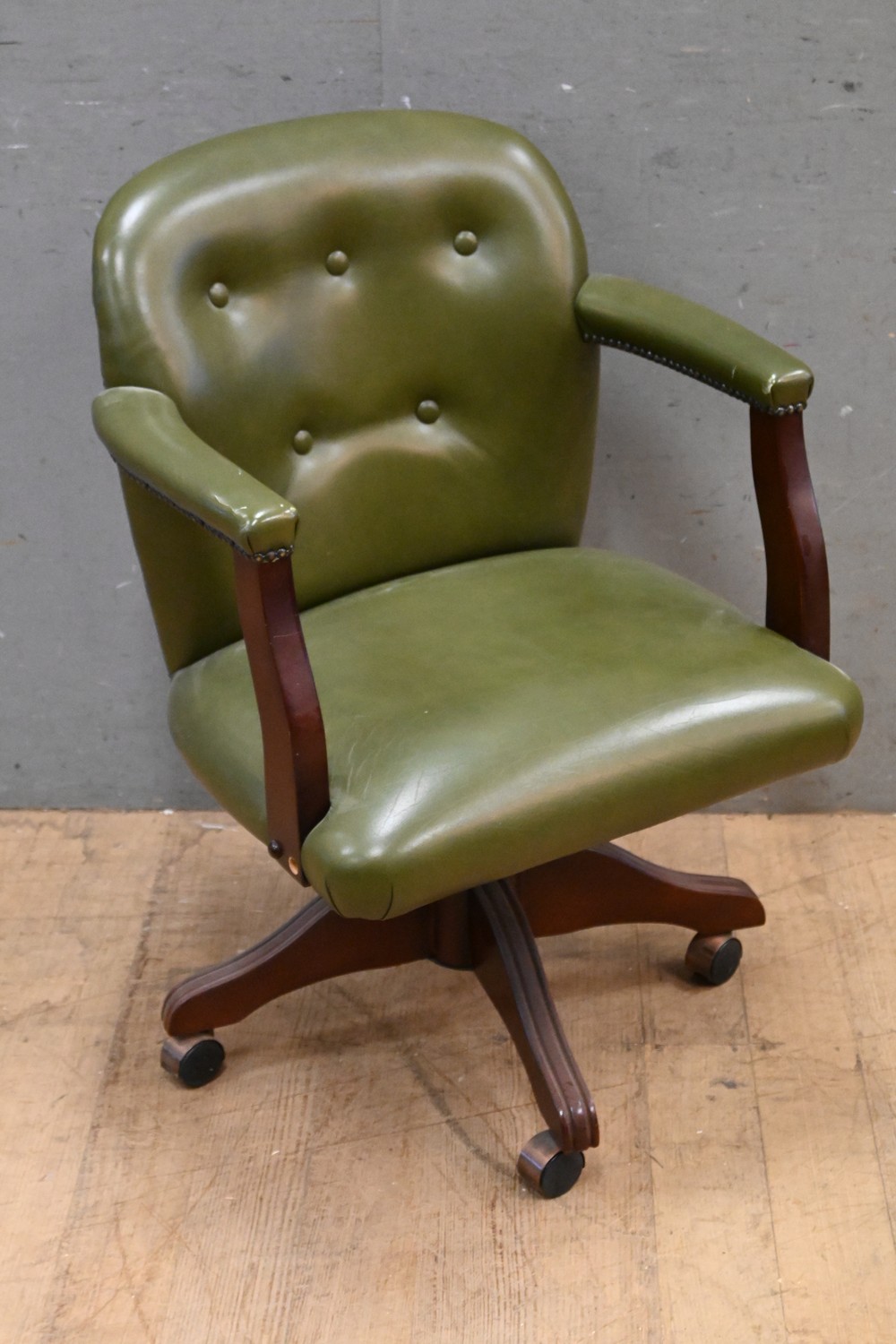 AN ANTIQUE STYLE OFFICE CHAIR (A/F) (86H X 60W X 60D CM) (LEONARD JOEL DELIVERY SIZE: LARGE)