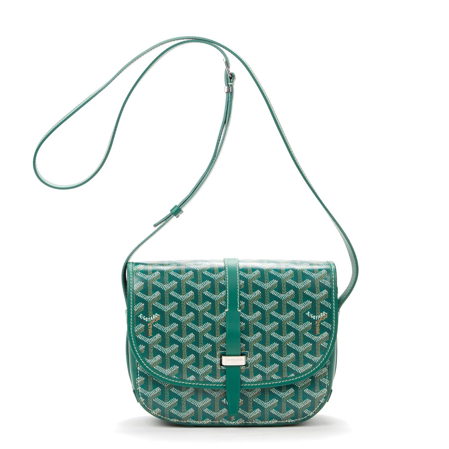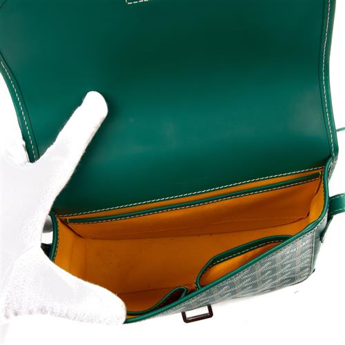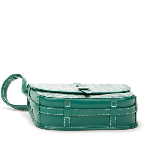Styled in green Goyardine monogram canvas with green leather trim and silver tone metal hardware, 22 x 16x 7cm.