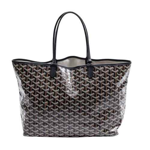 Styled in black/brown Goyardine monogram canvas with black leather trim and silver tone metal hardware, 34 x 28 x 15cm