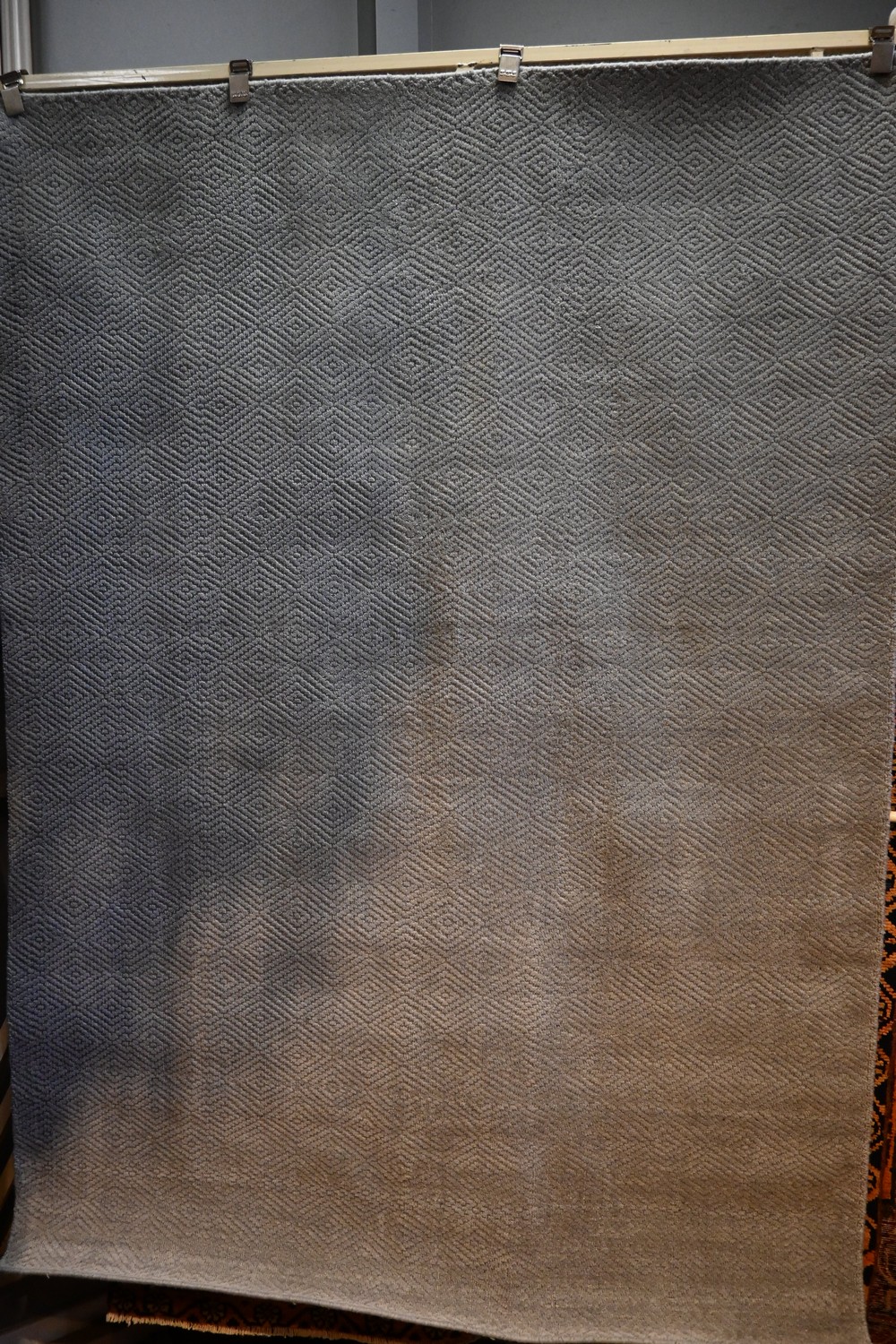 A BRAND-NEW MODERN CONTEMPORARY RUG, HANDLOOMED. SILKY TEXTURE (VISCOSE). ERASED TEXTURED PATTEN. IN GREY TONES. SIZE: 152 X 213 CM RRP $1,200 - ORIGIN: INDIA.