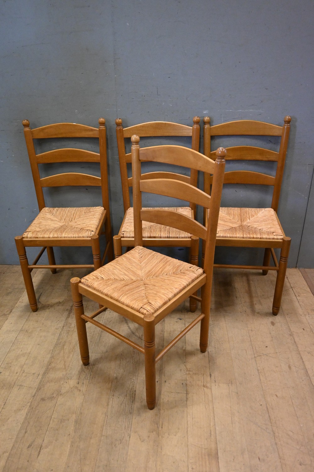 A SET OF FOUR LADDERBACK RUSH SEATS (A/F) (96H X 43W X 49D CM) (LEONARD JOEL DELIVERY SIZE: LARGE)