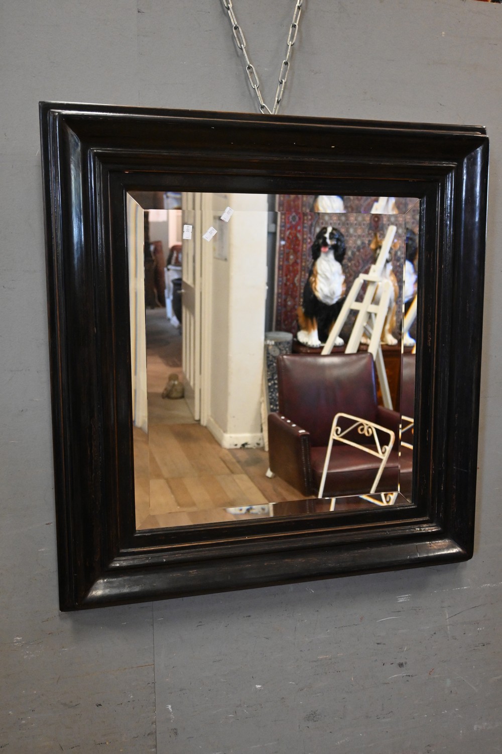 AN EBONISED TIMBER WALL MIRROR (80H X 77W CM) (LEONARD JOEL DELIVERY SIZE: MEDIUM)