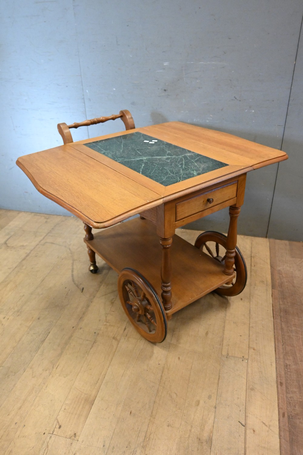 A TWO TIER AUTO TROLLEY WITH MARBLE INSET (78H X 96W X 85D CM) (LEONARD JOEL DELIVERY SIZE: MEDIUM)