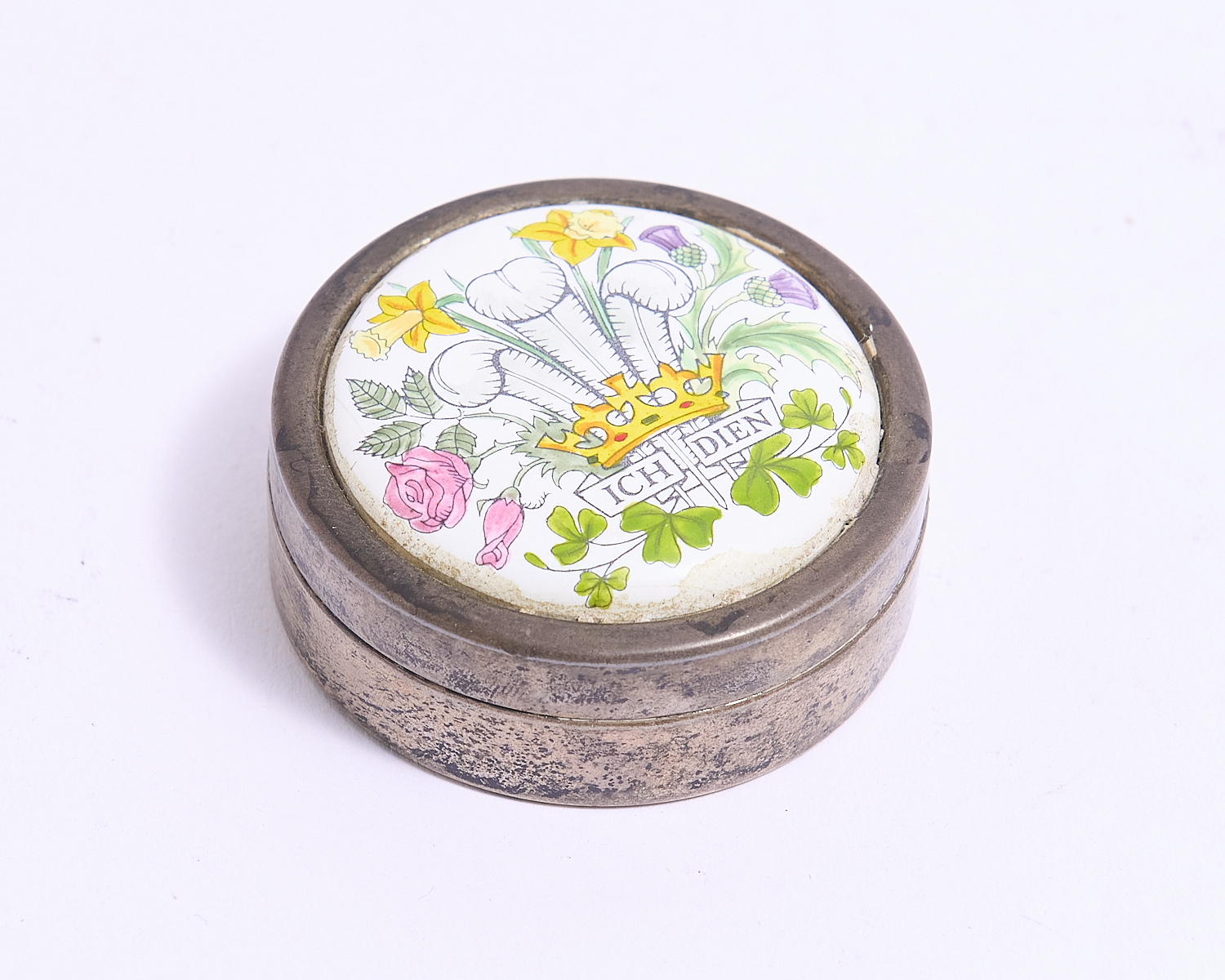 A STERLING SILVER AND PORCELAIN PILL BOX COMMEMORATING THE MARRIAGE OF PRINCE CHARLES AND LADY DIANA SPENCER, LTD EDITION DIA.5CM, LEONARD JOEL LOCAL DELIVERY: SMALL