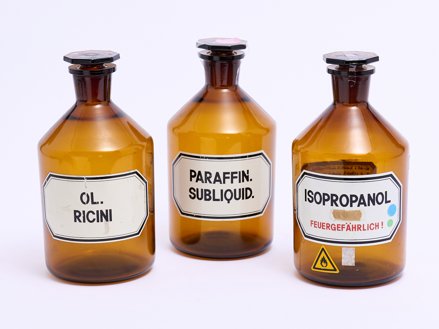 A COLLECTION OF THREE APOTHECARY GLASS VESSELS, GERMAN H.21.5CM, LEONARD JOEL LOCAL DELIVERY: MEDIUM