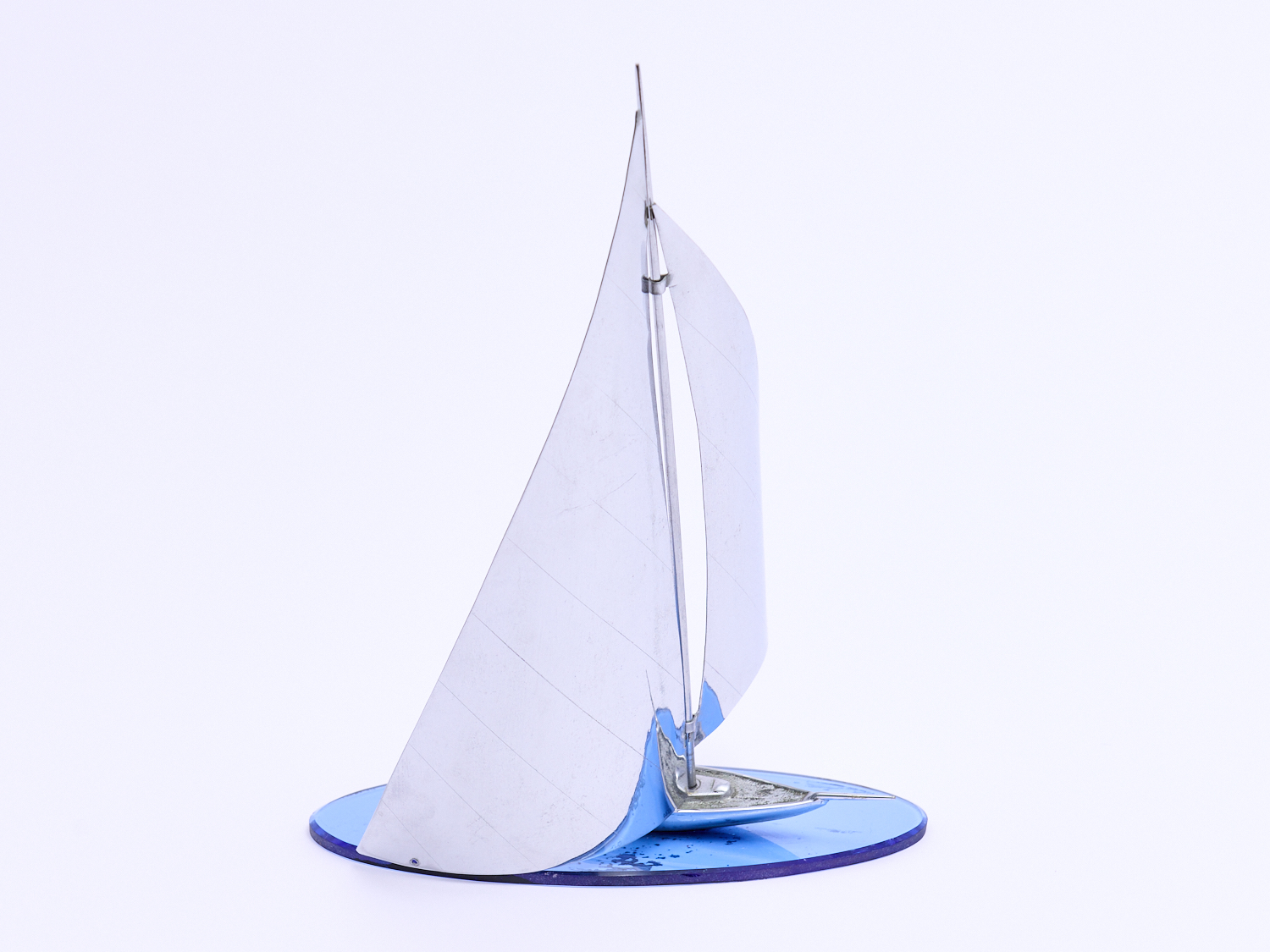 A CHROME MODEL YACHT H.31CM, LEONARD JOEL LOCAL DELIVERY: SMALL