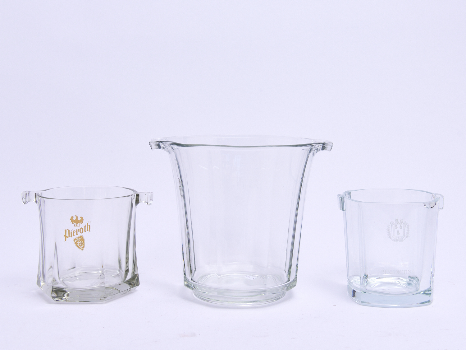 A DOMAIN CHANDON GLASS ICE BUCKET TOGETHER WITH TWO SMALLER H.20CM (TALLEST), LEONARD JOEL LOCAL DELIVERY: MEDIUM