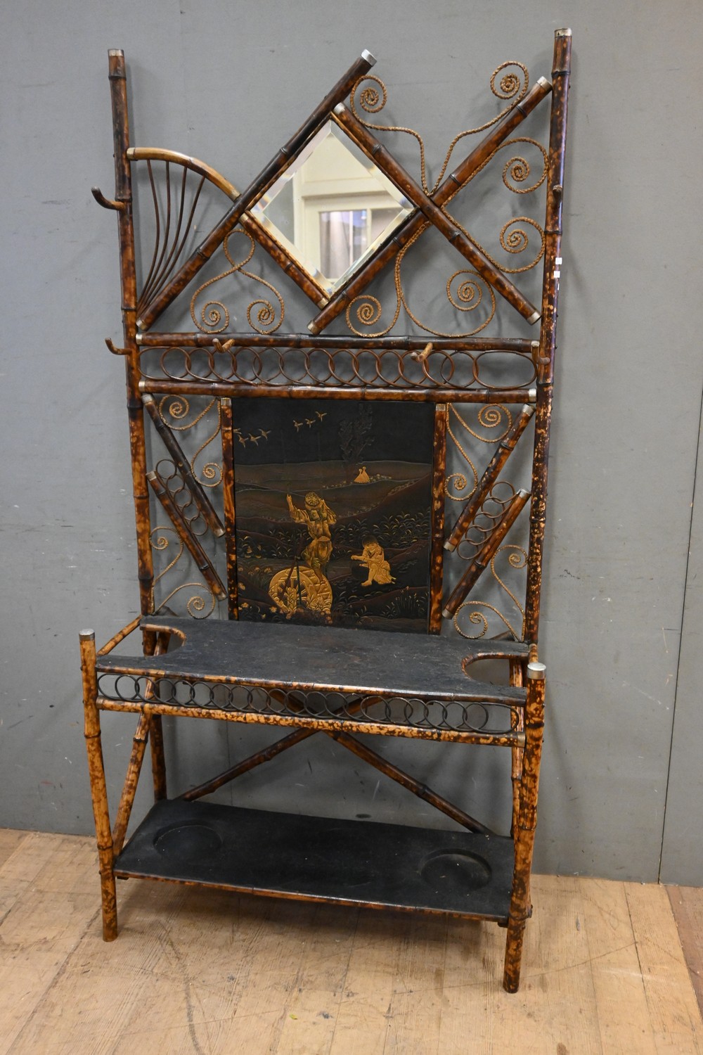 A CHINOISERIE STYLE BAMBOO AND CANE COAT STAND (195H X 96W X 38D CM) (LEONARD JOEL DELIVERY SIZE: X-LARGE)