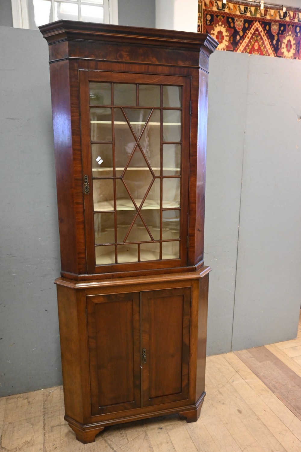 A GEORGIAN STYLE CORNER DISPLAY CABINET (A/F) (200H X 82W X 55D CM) (LEONARD JOEL DELIVERY SIZE: X-LARGE)