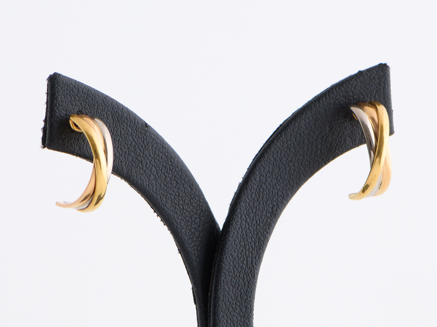 A PAIR OF TRI COLOURED EARRINGS TO SCREWBACK POST AND BUTTERFLY FITTINGS IN 18CT GOLD, 3.5GMS