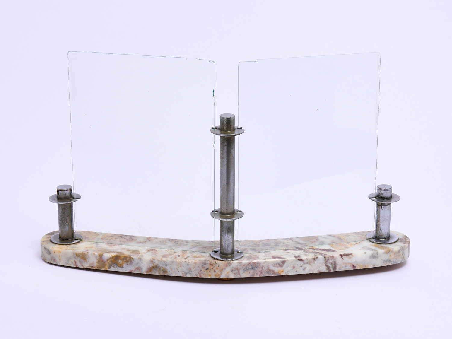 AN ART DECO CURVED BASE MARBLE AND NICKEL PICTURE FRAME, L.44CM (A/F), LEONARD JOEL LOCAL DELIVERY: MEDIUM