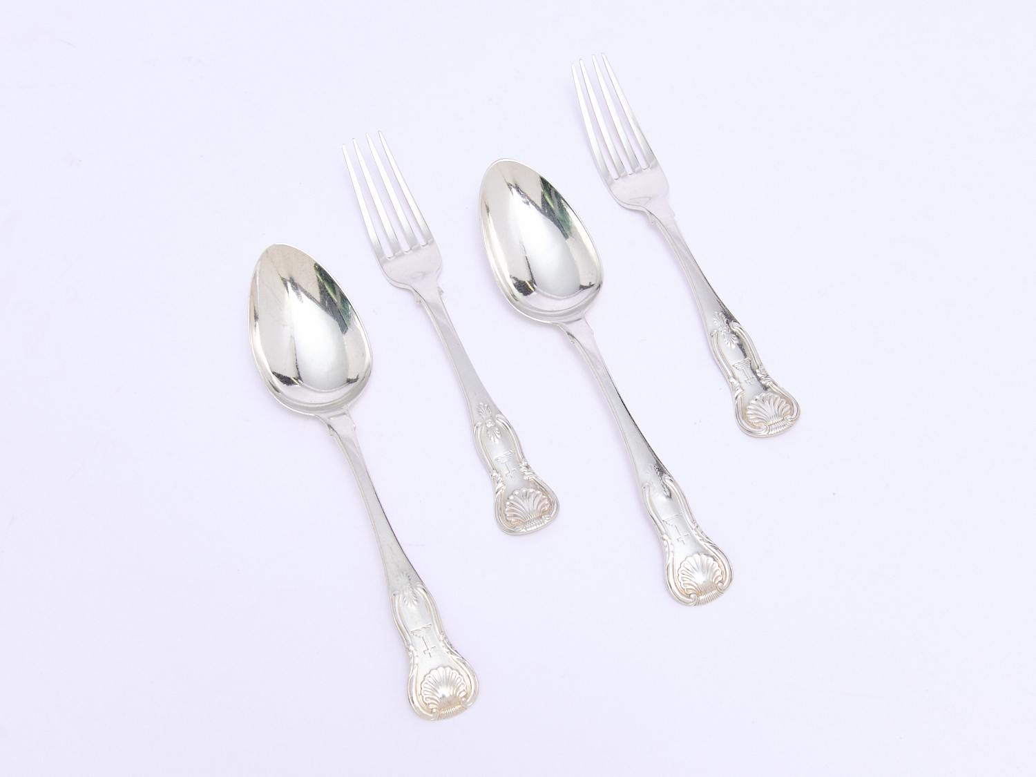 FOUR PIECES OF GEORGIAN STERLING SILVER FLATWARE, NEWCASTLE WITH CRUCIFIX CREST – 152 GRAMS L.17CM, LEONARD JOEL LOCAL DELIVERY: SMALL