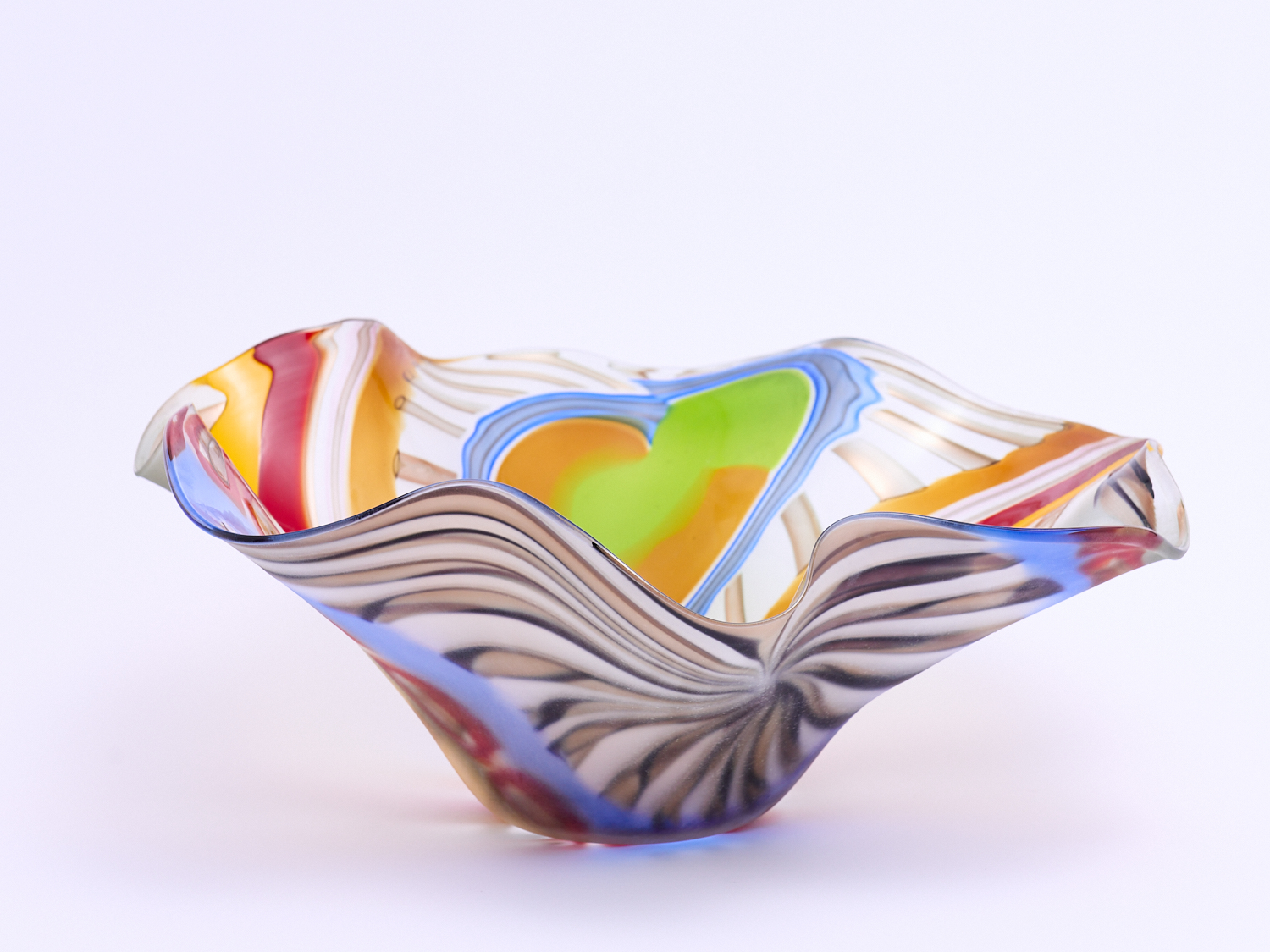 A LARGE MULTICOLOURED MURANO GLASS BOWL BY LEONE PANISSON DIA.47CM, LEONARD JOEL LOCAL DELIVERY: MEDIUM