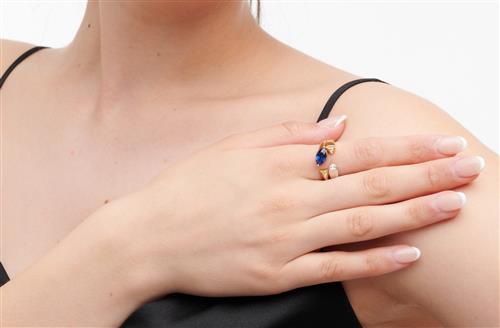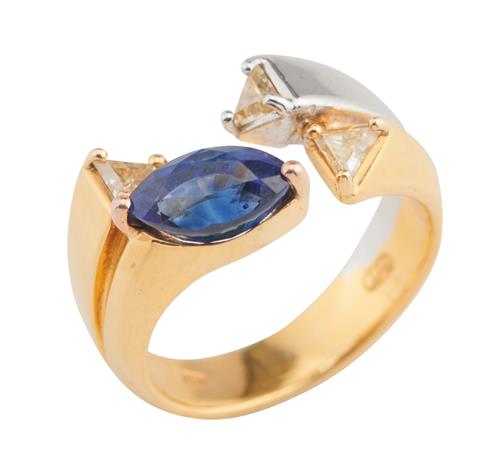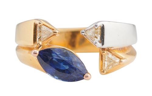 18CT TWO-TONE GOLD, SAPPHIRE AND DIAMOND RING