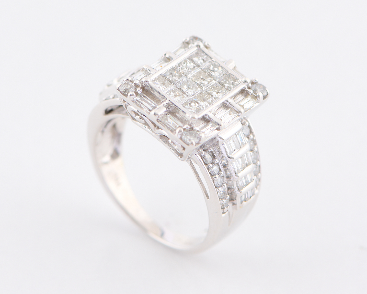 A SAPPHIRE AND DIAMOND RING IN 18CT WHITE GOLD, RING SIZE M, THE SAPPHIRE TOTALLING 8.70CTS, THE DIAMONDS TOTALLING 1.25CTS, ACCOMPA...