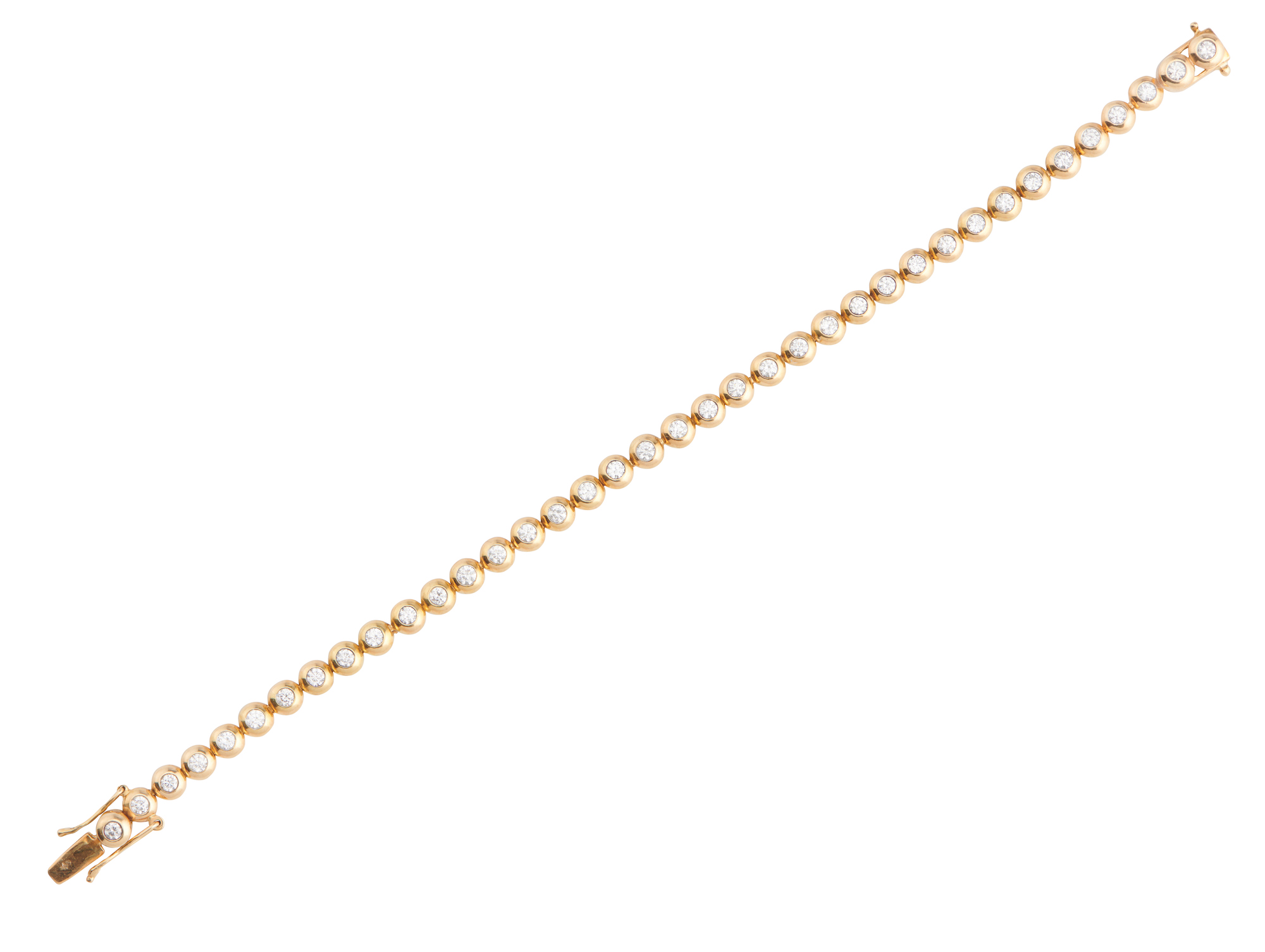 Designed as continuous line of forty-two bezel-set brilliant-cut diamonds together weighing approximately 2.50 carats, completed by a box clasp, length approximately 175mm.