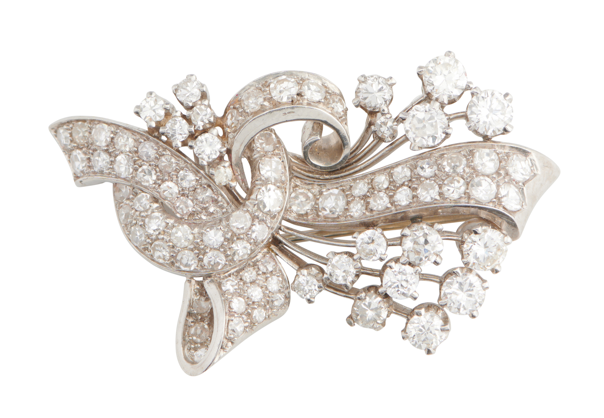 Of spray design, set throughout with transition and old European-cut diamonds together weighing approximately 2.71 carats, length approximately 45mm.