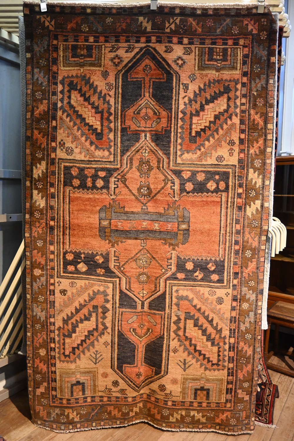 A FABULOUS PERSIAN LORDEGAN RUG. 100% WOOL PILE. ORGANIC DYES. TRIBAL DESIGN OF LINKED CROSS MEDALLIONS WITHIN A RUST AUTUMNAL FIELD. WOVEN BY A CHRISTIAN ARMENIAN WEAVER LEAVING HIS FAITH. BORDER OF ROSETTES & GEOMETRIC MOTIFS. SIZE: 248 X 145 CM ORIGIN: PERSIA - RRP: $2,200 DOCUMENTATION OF AUTHENTICITY INCLUDED