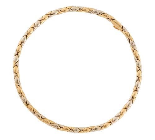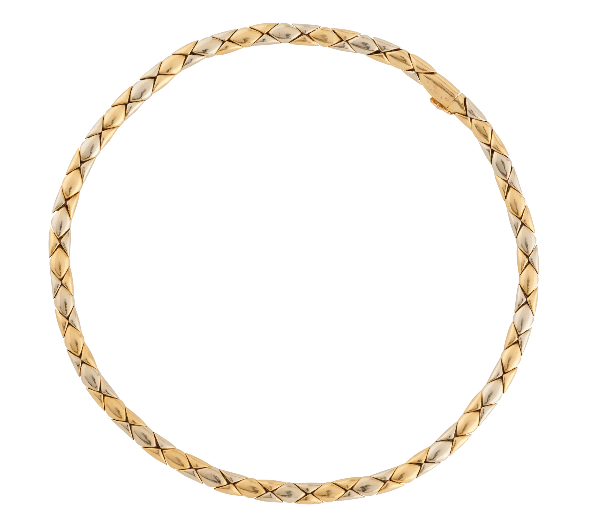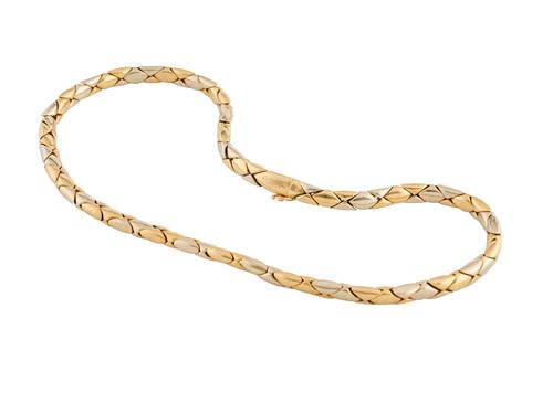 The fancy geometric link chain, completed by a box clasp, signed Cartier and numbered 783638, length approximately 400mm, accompanied by a Cartier pouch.