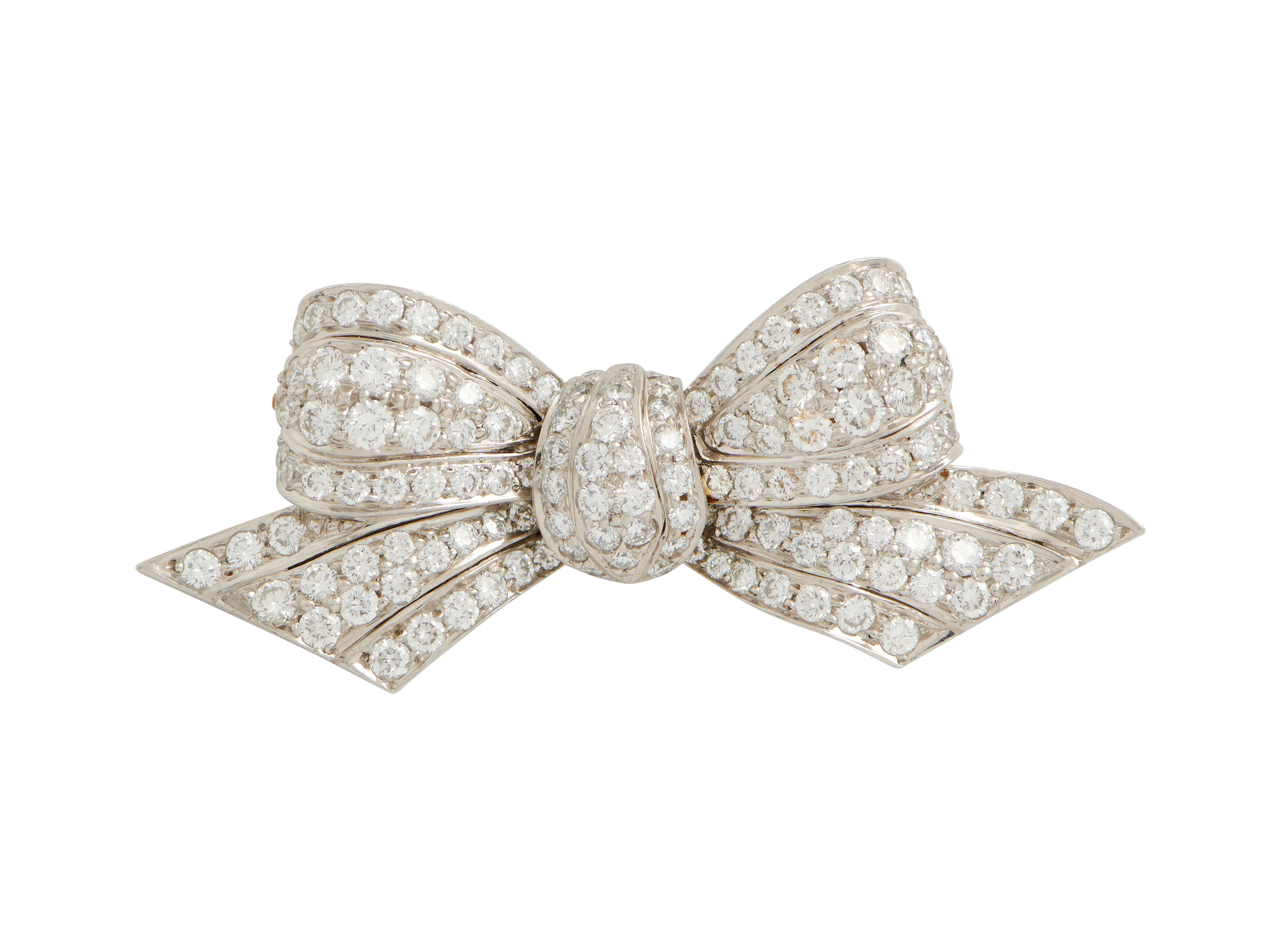Modelled as a bow, set throughout with brilliant-cut diamonds together weighing approximately 2.67 carats, signed Tiffany & Co., length approximately 46mm, accompanied by a Tiffany & Co. pouch.