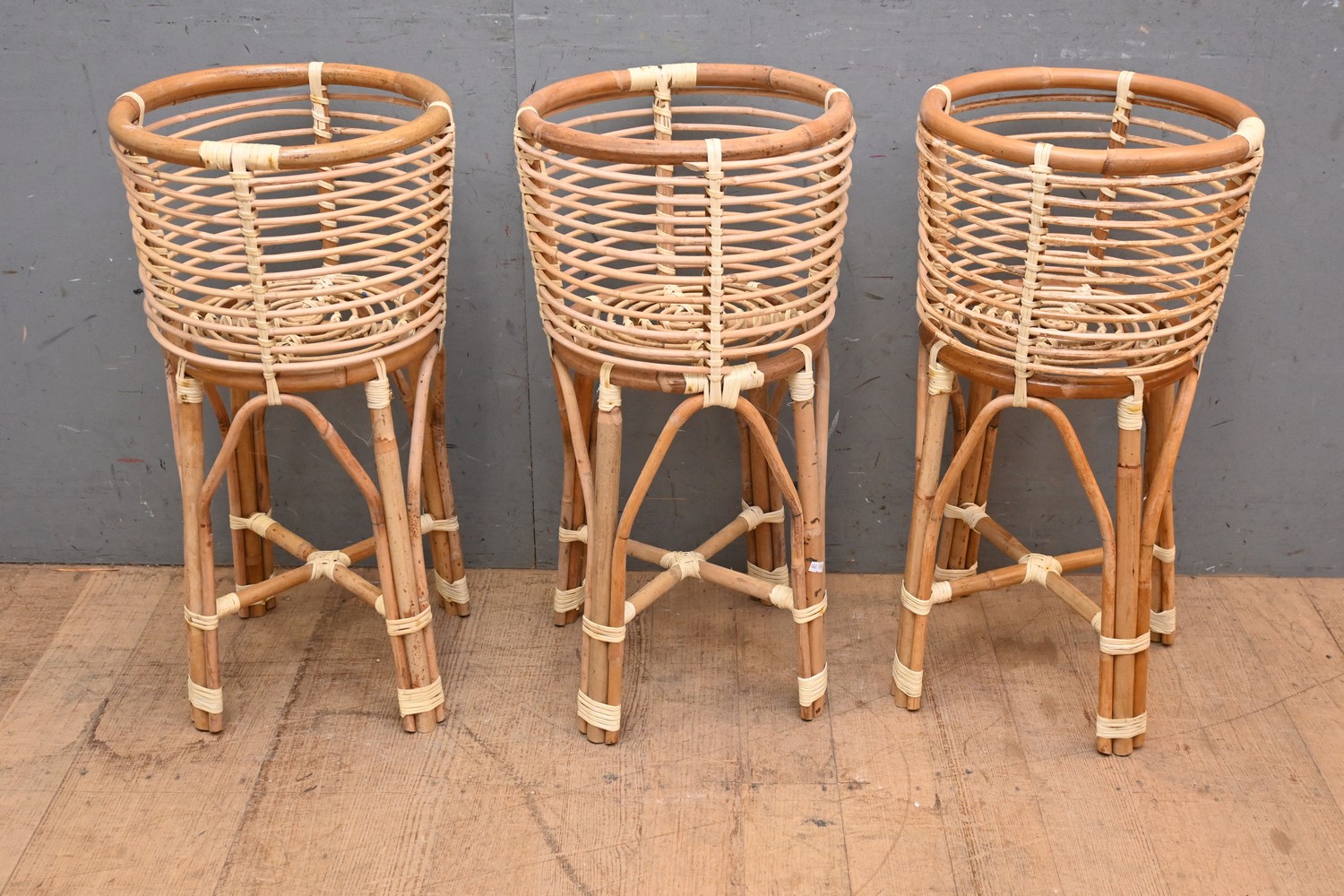 THREE RATTAN PLANT HOLDERS (70H X 37D CM) (LEONARD JOEL DELIVERY SIZE: MEDIUM)