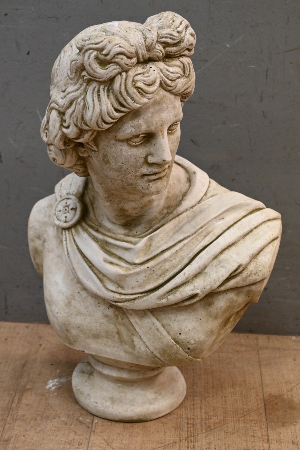 A CONCRETE BUST OF APOLLO (51 CM H) (LEONARD JOEL DELIVERY SIZE: LARGE)