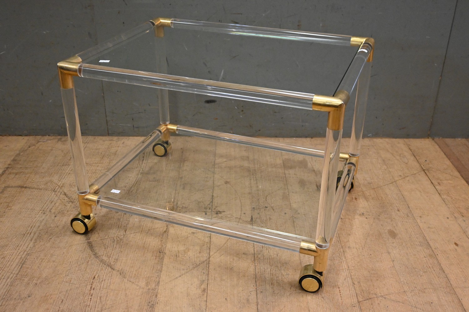 A MID CENTURY PERSPEX AND GLASS TWO TIER COFFEE TABLE (45H X 62W X 47D CM) (LEONARD JOEL DELIVERY SIZE: MEDIUM)