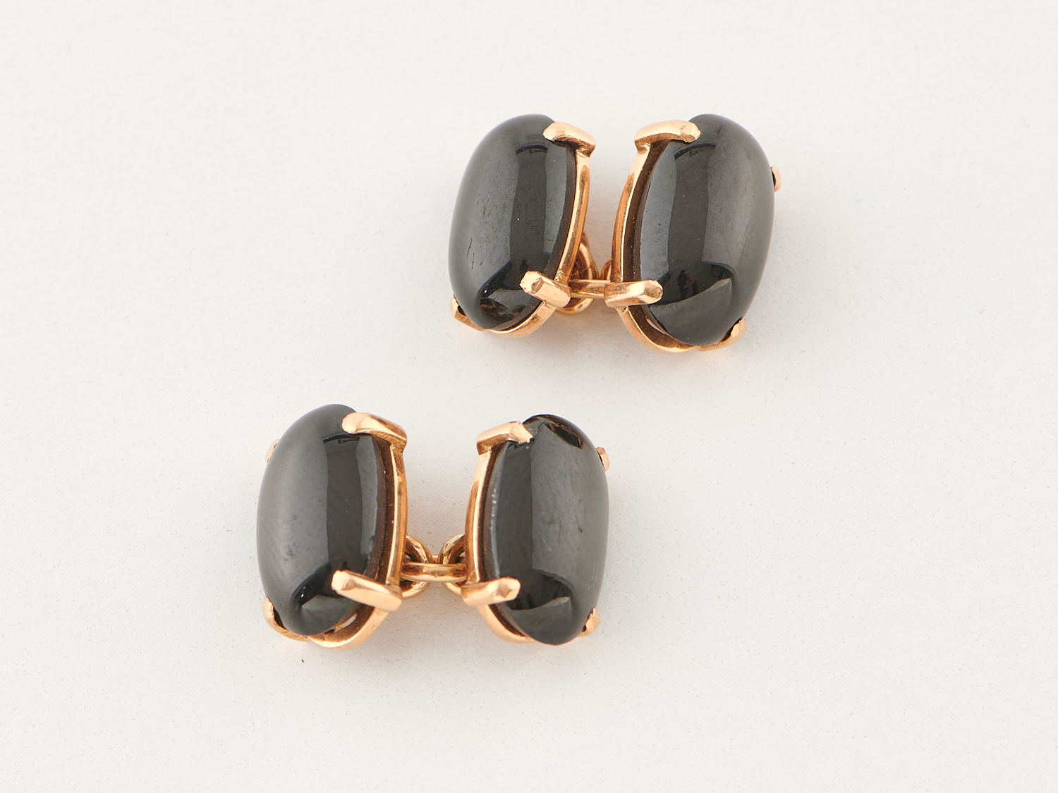 A PAIR OF STAR DIOPSIDE CUFFLINKS IN 18CT GOLD, 11.2GMS