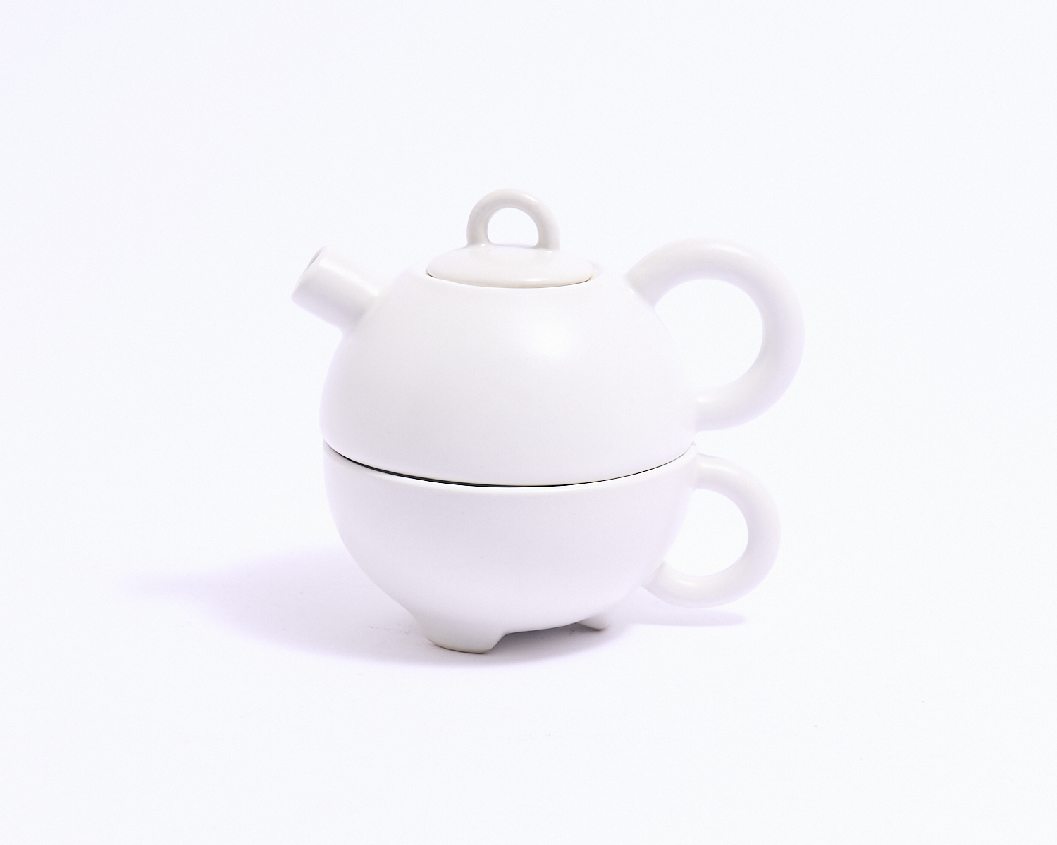 A POSTMODERN TEAPOT WITH A CUP BY BROSTE H.13CM, LEONARD JOEL LOCAL DELIVERY: SMALL
