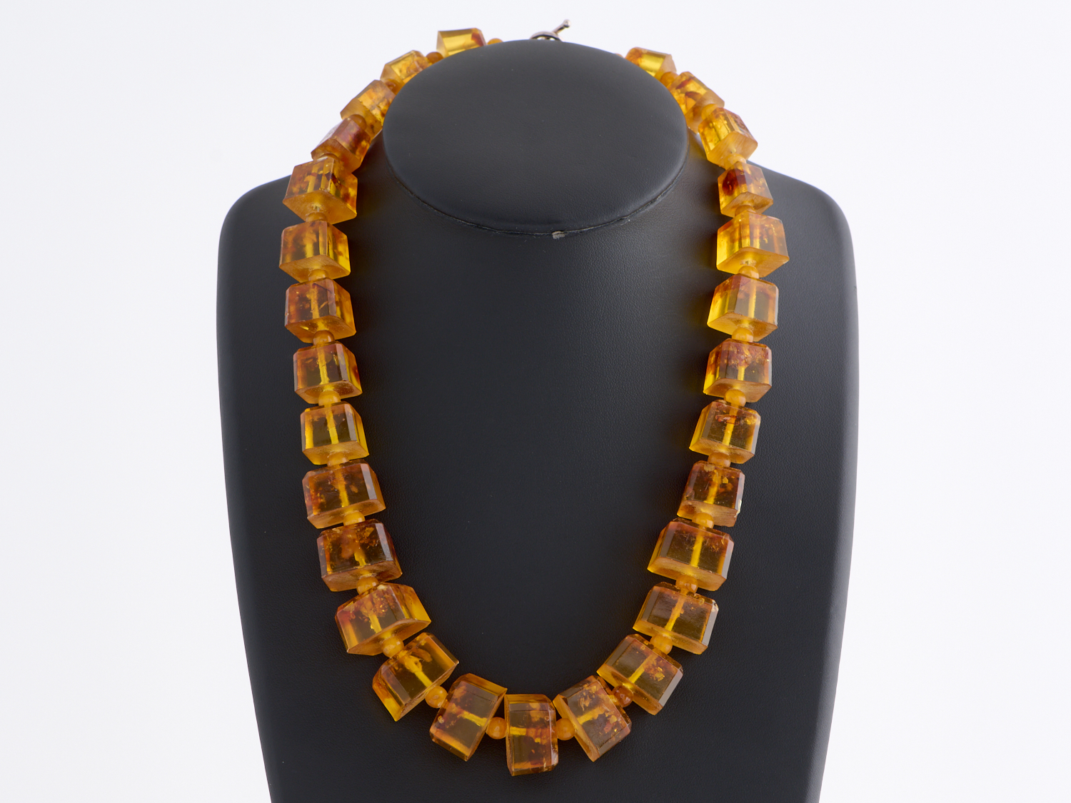 A GRADUATING TREATED AMBER NECKLACE, TOTAL LENGTH APPROXIMATELY 530MM