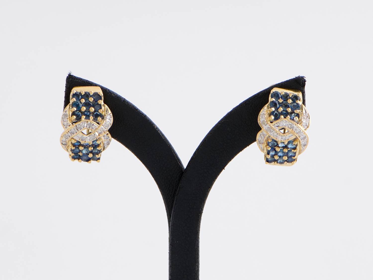 A PAIR OF SAPPHIRE AND DIAMOND EARRINGS IN 14CT GOLD, TO POST AND CLIP FITTINGS, 8.0GMS