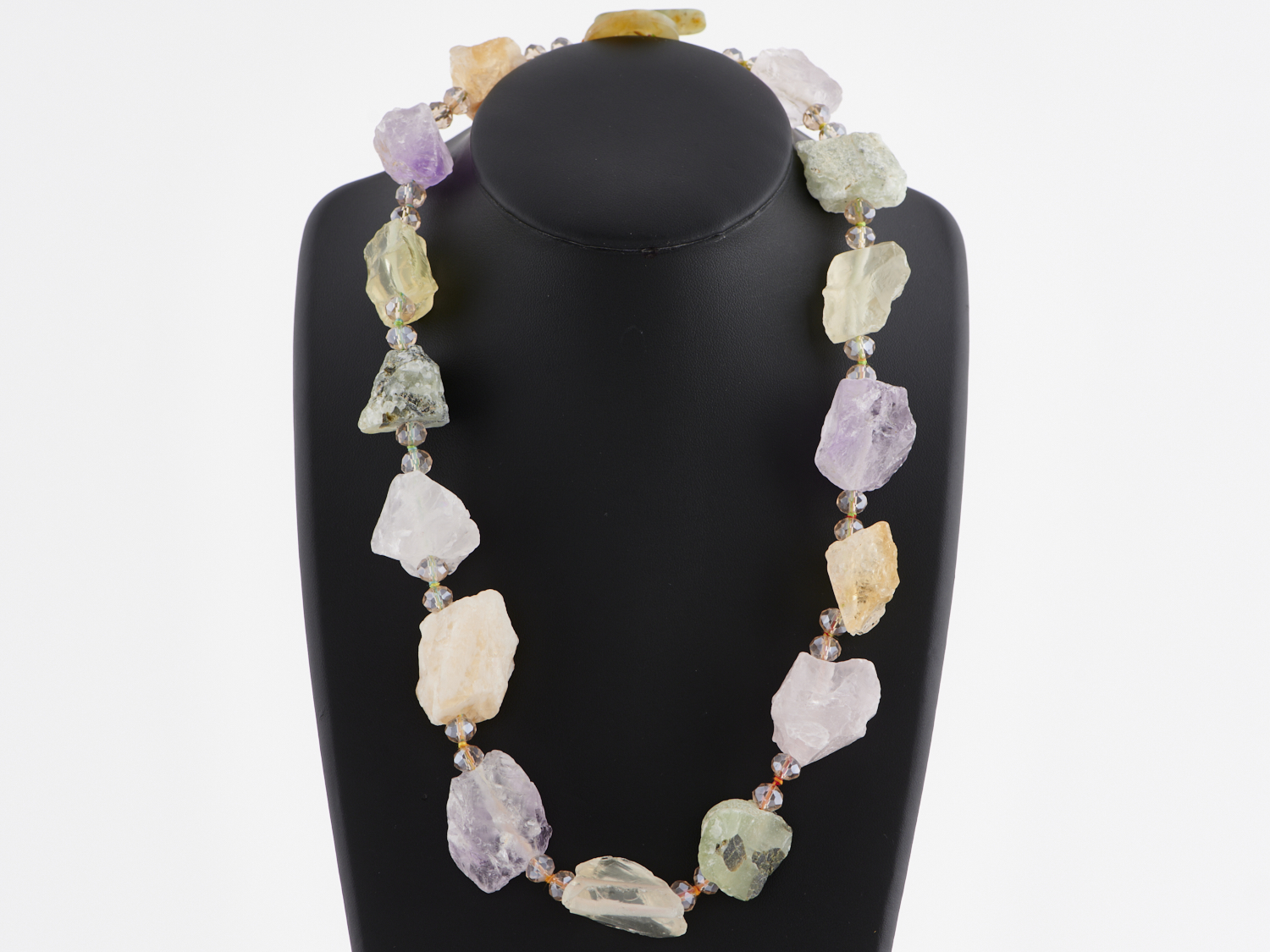 A ROUGH CUT QUARTZ NECKLACE, TO TOGGLE CLASP, LENGTH 580MM