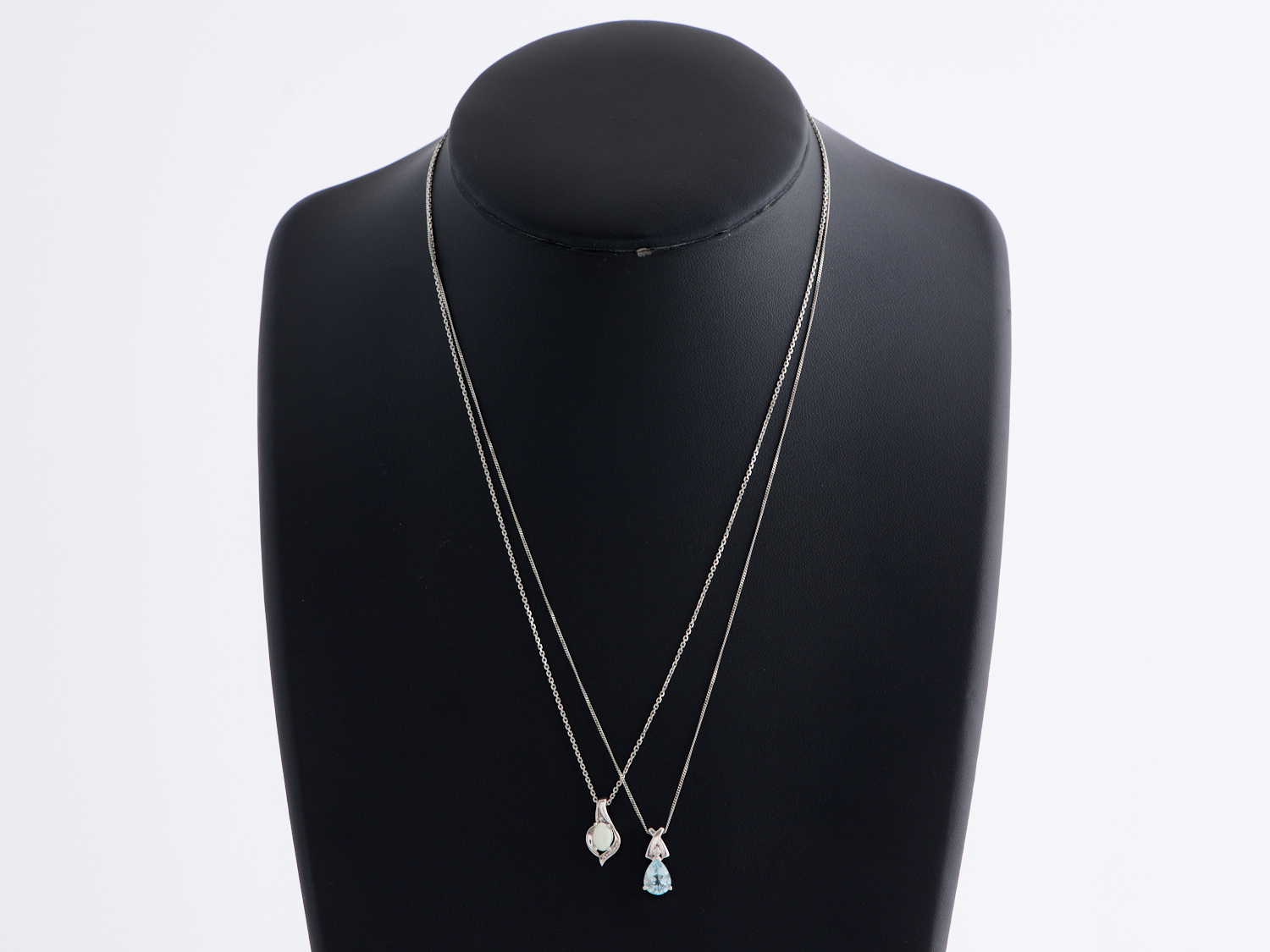 TWO GEM SET PENDANTS IN 9CT WHITE GOLD, INCLUDING AQUAMARINE AND DIAMOND SET, AND SOLID OPAL AND DIAMOND SET, TOTAL WEIGHT APPROXIMATELY 3.90GMS