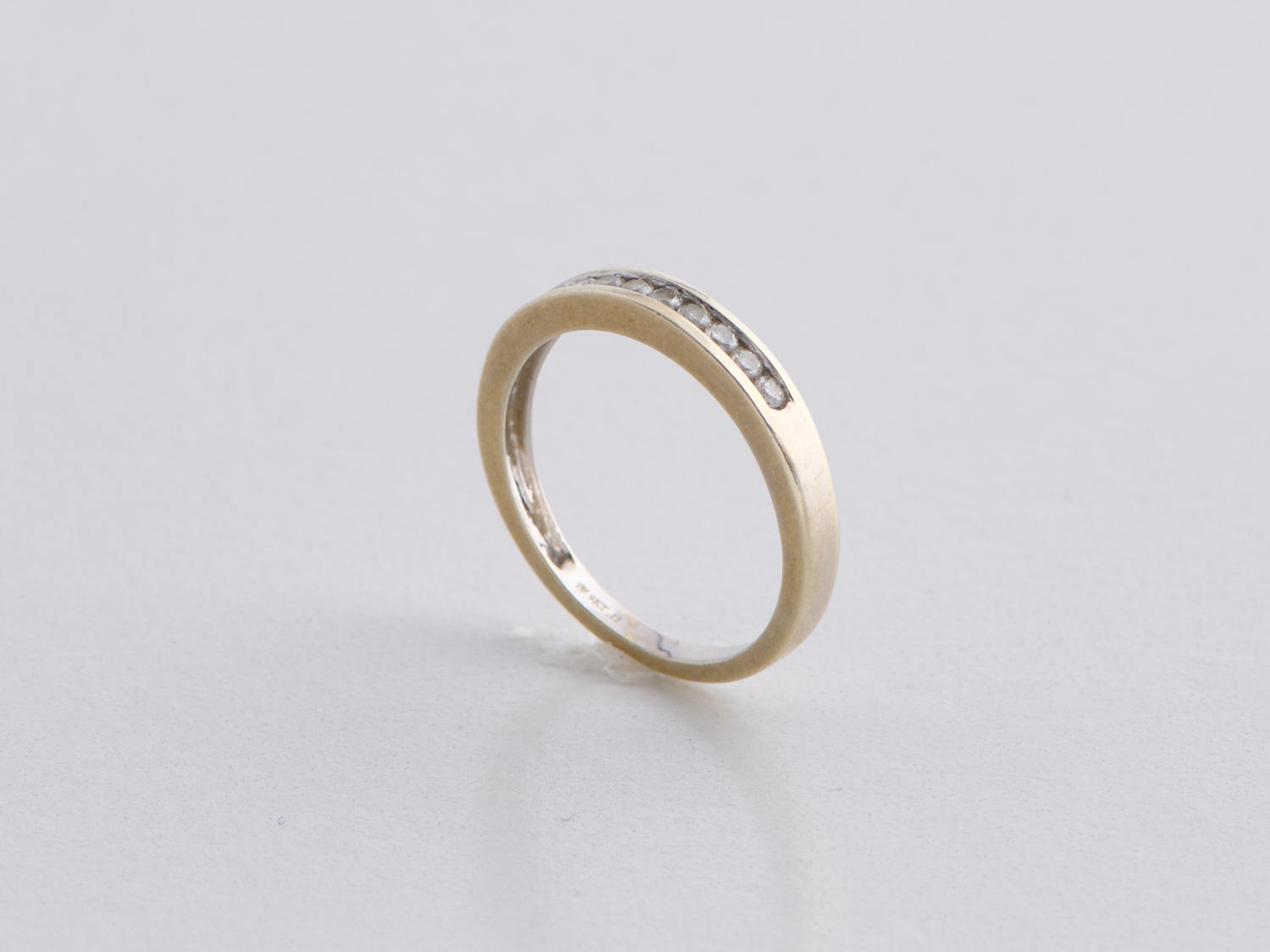 A DIAMOND BAND RING IN 9CT WHITE GOLD, RING SIZE K, 1.58GMS